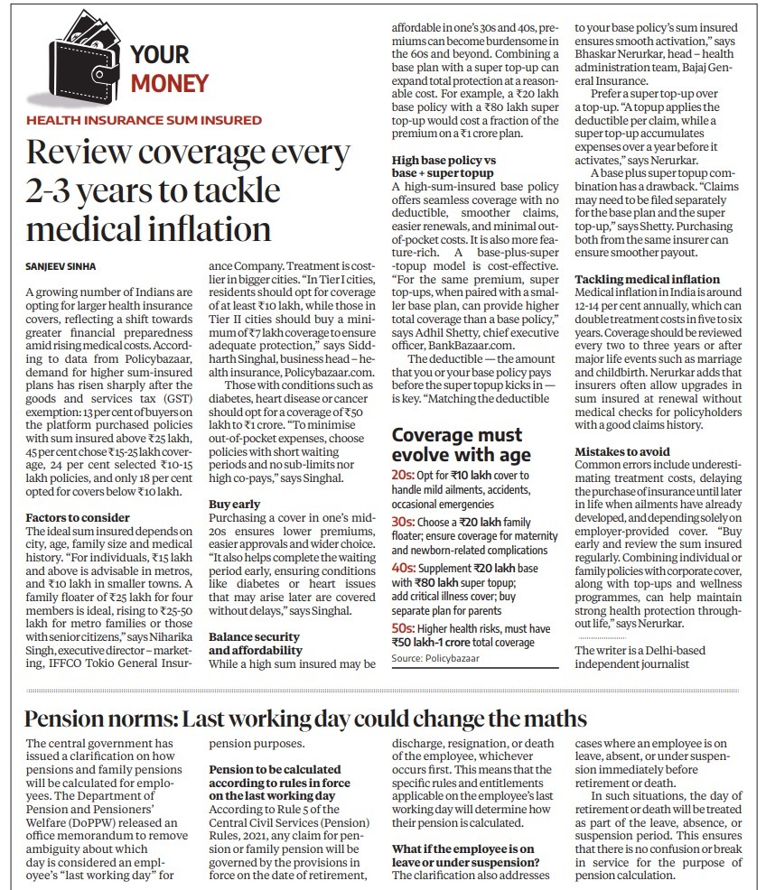 News Coverage on 'Business Standard' Newspaper About 'Health Insurance Policy SI' : Quote By Company's Spokesperson
